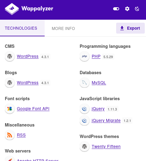 Detectamos que el sitio utiliza WordPress 4.3.1, una versión con vulnerabilidades conocidas.