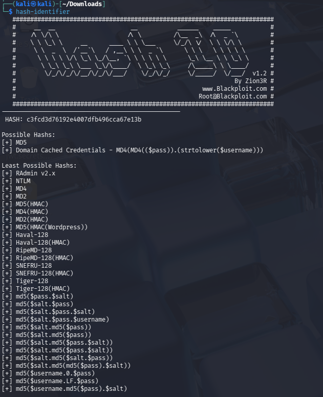 Identificamos el hash como MD5 y, tras crackearlo, obtenemos la contraseña en texto claro: